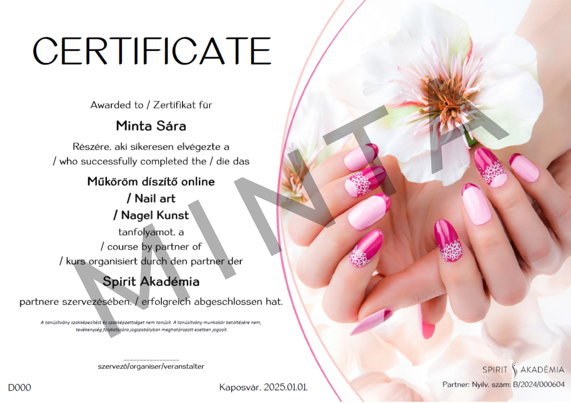 Műköröm díszítő online tanfolyam képzésünket egyéni vállalkozó partnerünk szervezi.